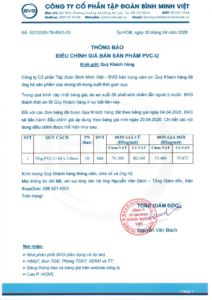 THÔNG BÁO: Điều chỉnh giá sản phẩm PVC-U